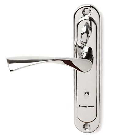 Ручки на планке под сувальдный ключ с задвижкой и шторкой (делятся на левые и правые комплекты) и под сувальдный ключ без задвижки (универсальные) предназначены для совместной установки с врезными замками под сувальдный ключ и межосевым расстоянием 77 мм