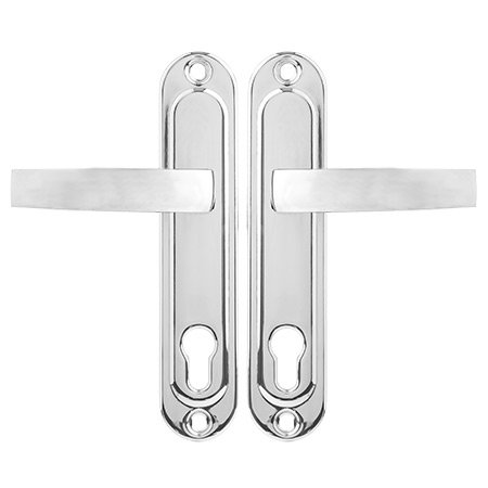 Ручки на планке предназначены для совместной установки с врезными замками под евроцилиндр и межосевым расстоянием 85 мм. Ручки универсальные: подходят для правых и левых дверей.