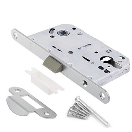 Замки и защелки с пластиковым язычком и низким уровнем шума. Предназначены для межкомнатных дверей с запиранием (евроцилиндр) или для сантехнических дверей (туалет/ванная). Угол нажатия ручки: 30 градусов.