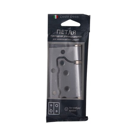 Универсальные накладные петли Code Deco из стали, не требующие врезки в дверное полотно, предназначены для деревянных межкомнатных дверей. Петли укомплектованы двумя проставочными кольцами, обеспечивающими плавность хода. Закаленные саморезы позволяют исп