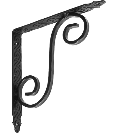 Кронштейн кованый применяется для крепления полок и стеллажей. Оригинальный орнамент выполнен по технологии холодной ковки.