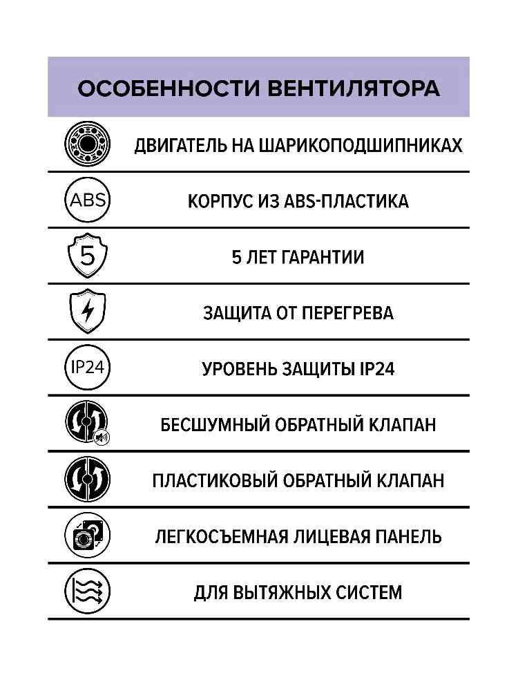 Вытяжные накладные вентиляторы RIO приемняются для монтажа в вентиляционные шахты или соединения с воздуховодами. Диаметр фланца 100 и 125 мм. Гармоничный дизайн с закрытой лицевой панелью без прямых углов. Двигатель на шарикоподшипниках с увеличенным сроком службы (до 40 000 часов непрерывной работы). Бесшумный обратный клапан с резиновыми стопперами. Подходит для монтажа в потолок (после снятия обратного клапана). Уровень защиты – IP24
