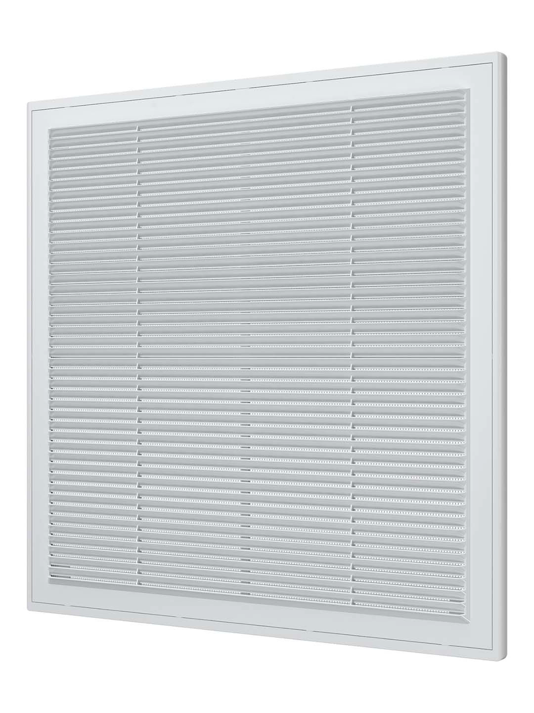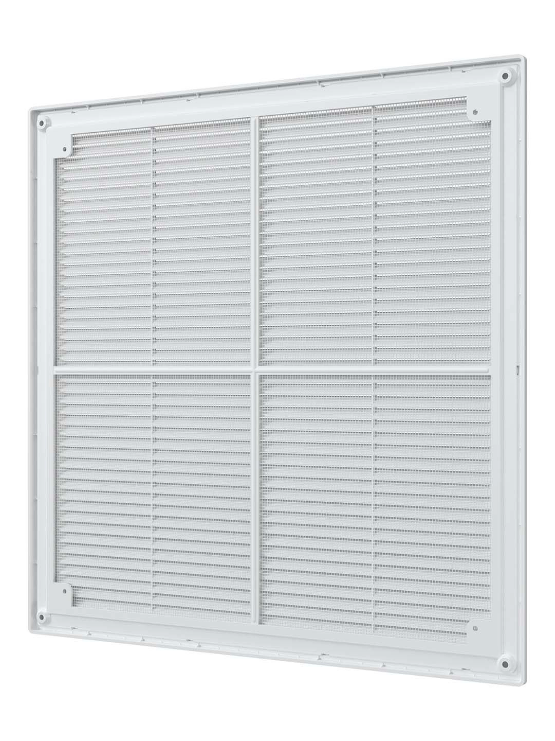 Вентиляционная решетка Р состоит из двух частей: рамки и решетки с жалюзи. Решетка не крепится непосредственно к стене или к потолку, а вставляется в рамку, которая монтируется на поверхности. Это позволяет легко снимать изделие для обслуживания: необходимо достать решетку из рамки, а затем также легко вернуть на место. Решетка оснащена наклонными жалюзи, которые помогают скрыть вентиляционный выход, а также антимоскитной сеткой для защиты от насекомых. Решетки Р представлены также в коричневом, бежевом и черных цветах.