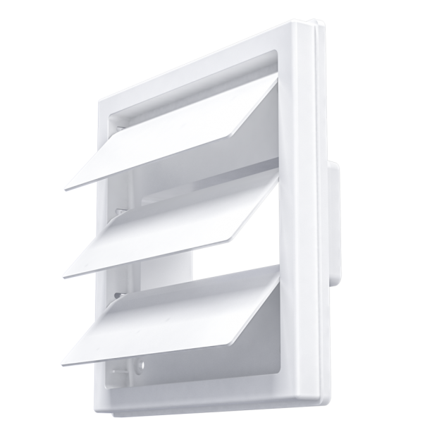 1515К511Ф, Решетка приточно-вытяжная с гравитационными жалюзи 150х150 с фланцем 55х110, ASA, бел.