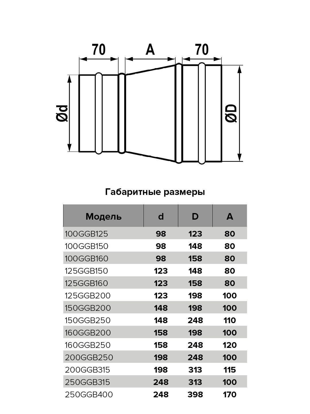 Редуктор, серия GGB, для круглых воздуховодов, D100/150, оцинкованная сталь