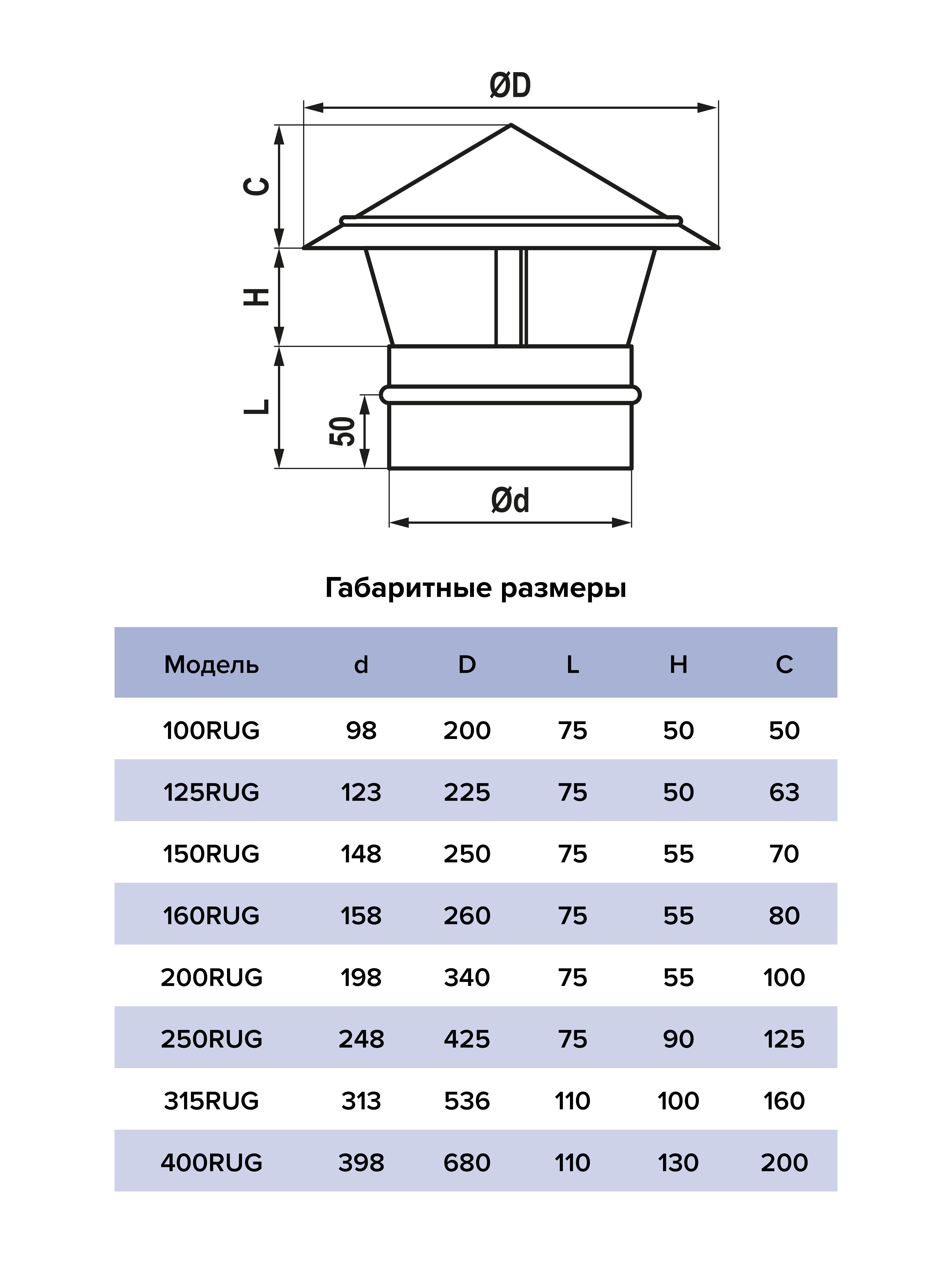 Зонт крышный, серия RUG, для круглых воздуховодов, D160, оцинкованная сталь